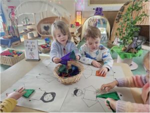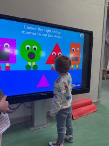 We are learning about shapes! The children connected lots of different magnet shapes together to create ‘Clothes’ for the people! They also enjoyed playing the shape game on our interactive board. In the afternoon we went on a shape hunt in the garden and found lots of 2D and 3D shapes.