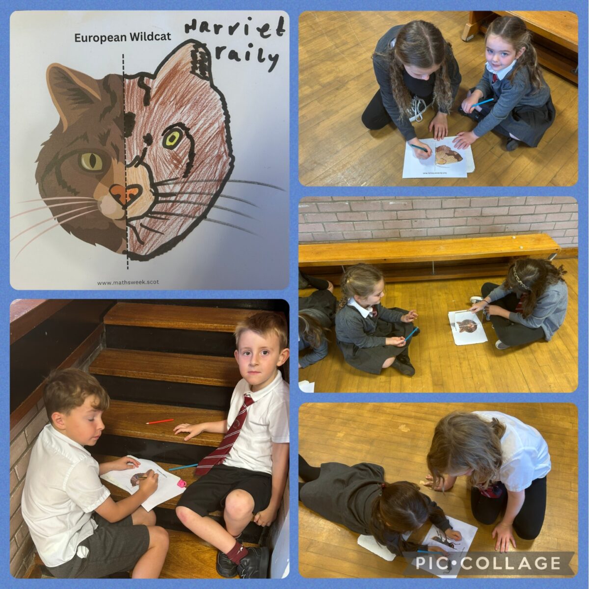 Primary 1 and 2 went on wild adventures with Fin Finity. They started their Maths Week Scotland adventure to Edinburgh Zoo! They visited the penguins first and had to calculate how many fish the King, Gentoo and Rockhopper penguins needed to eat. They thought that drawing out fish might help them but soon realised it took ages…so they counted 60 fish with cubes instead. They then found out that the King penguins would eat half of the fish, the Gentoo penguins would eat 1/3 and the Rockhopper penguins would have the rest so they needed to work out what half of and 1/3 of 60 was. After that they needed to find out how many fish to feed each penguin. They discovered that there were 6 King penguins, 5 Gentoo penguins and 5 Rockhoppers that were needing feed so we split our totals amount these. Lots of hard work!