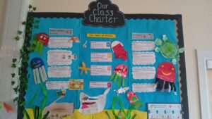 We consult our children in developing “Class Charters” which are visible and often referred to in our classrooms. They promote positive relationships and reinforce to the children that they are rights holders and that the adults in the school (and wider community) are duty bearers. Please have a look at the creative way our children design them.