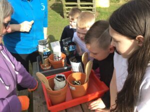 Big thanks to Eric and Harper’s mums. We’ve planted loads of veg, and today we planted flowers for wildlife.
