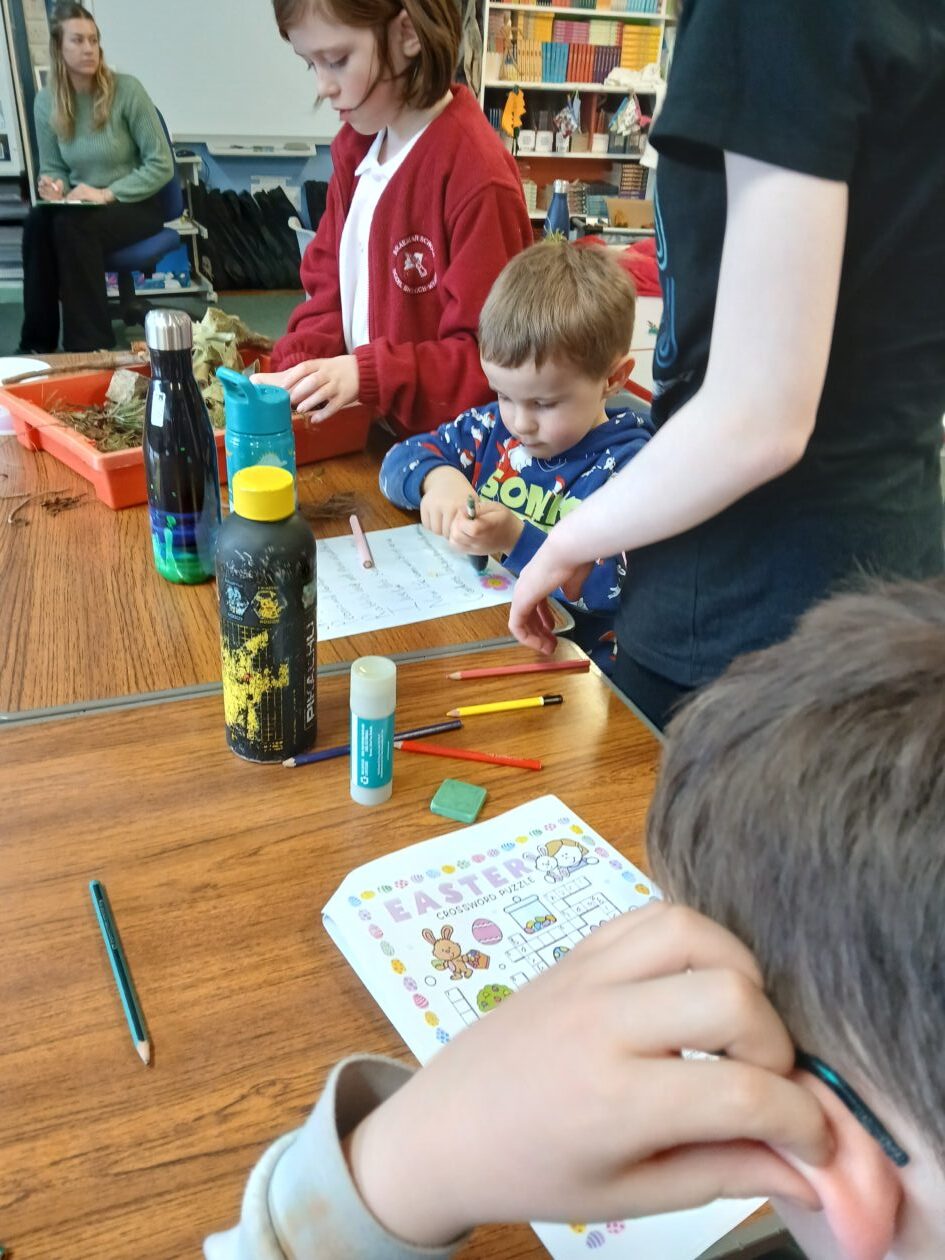 On Thursday we came together to complete our Spring House Challenge. We wrote poetry, designed and made Easter bonnets for Buttony Bear, made Easter gardens and completed puzzles. We also had a challenge to move an egg without touching it. The winning team made a zipline to move their egg.