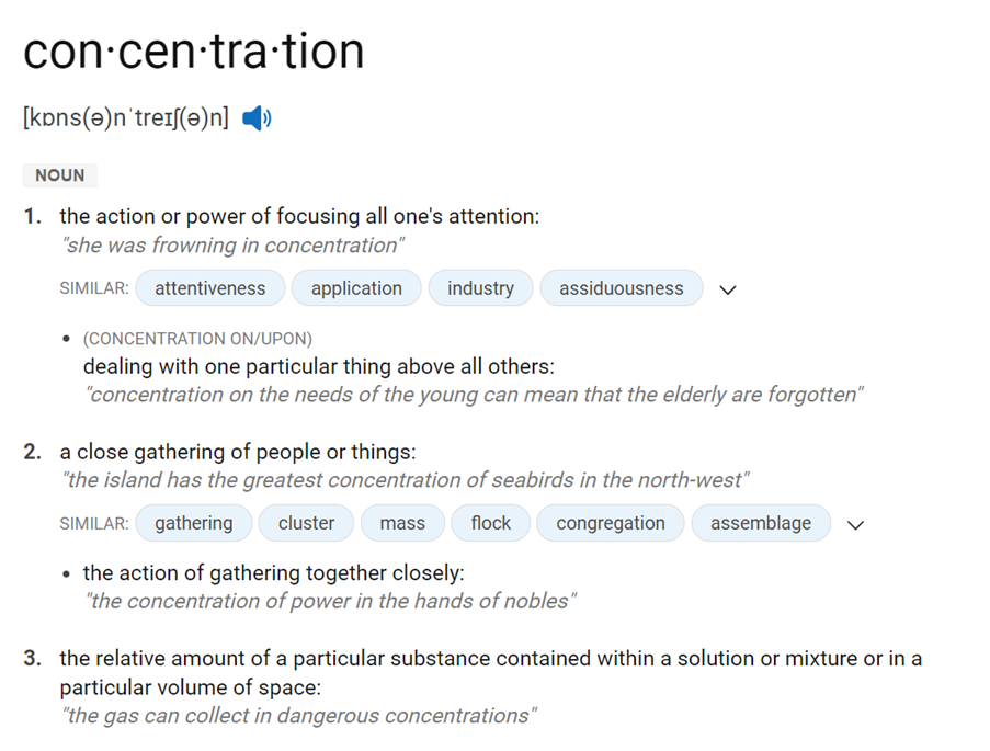 A pupil may know the word concentration, but may only know it means to think hard about something, and may be confused when it used to describe the relative amount of a particular substance contained within a solution.