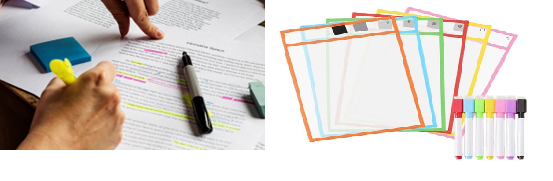 Pupils highlight or mark the text to identify relevant information that will help them complete the next task. Provide the pupil with a photocopy of the text if they can’t mark the original, or use a dry wipe pocket.