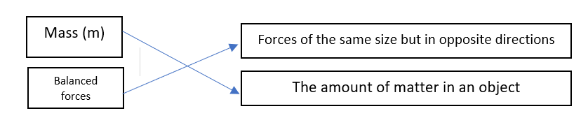This could be words to definitions, questions to answers, cause to effect etc to show understanding of vocabulary and concepts. It could be matching first language word to English word.