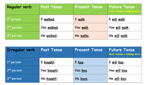 Tenses are often an area of difficulty. Different languages represent tense in different ways and so this may not come naturally to pupils. It is important to expose pupils to a range of tenses in context.