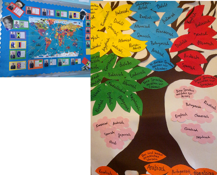 · It could take the format of a ‘language tree’ with all children taking a leaf for each language they speak to add to the trunk. The languages could be bunched on branches. (The version shown above is from a German school!)