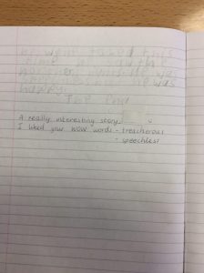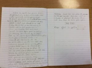 This child in Primary 6 wanted to write a story at home so decided to share it in their home learning jotter.