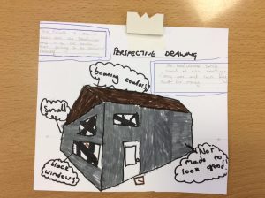 This child in Primary 6 was learning about perspective drawings at home so decided to draw the home of the main character in their class novel “The Breadwinner”.