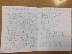 Here is a Primary 2 pupil who used their food and toys to learn about fractions! They have also included a recipe for banana loaf which they used to practise their measuring skills.