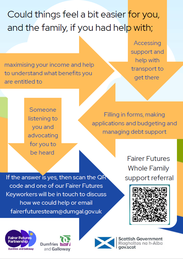 Today Primary 4-7 welcomed back one of their favourite visitors Kathryn Purchase from History Alive. Kathryn delivered a super informative presentation on World War 2; the rise of the Nazi Party, the Battle of Britain, life on the home front, conscription rationing, evacuees and VE Day, she really updated us life between 1939 and 1945! 😊 Kathryn is so knowledgeable and interesting to listen to, she kept us on the edge of our seats as we immersed ourselves in all things WW2. The children had so many super questions, particularly about life here in Leswalt during war times. WeWhole Family Support referral poster