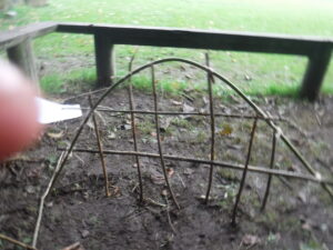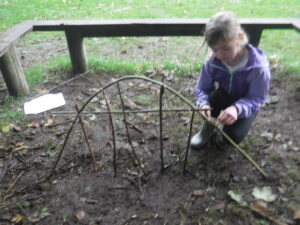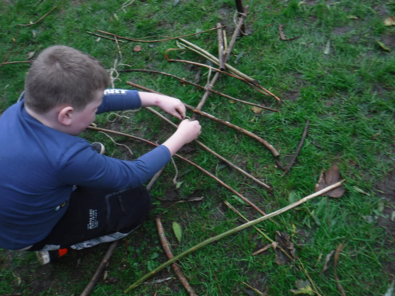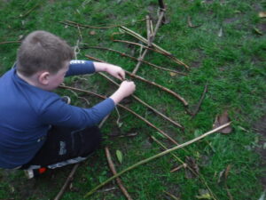 We made a ladybird.  We worked hard, with got some really long sticks and bent them. Next we used string to tie them together.  Liam and Foxx