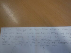 Hello it is Tom today I am going to talk about WW2. In world war 2 topic we have been learning about planes and rooms this is a picture of me drawing a slice of bacon. We also made aeroplanes I made a spitfire. We also could of made Messerschmitt. the Messerschmitt is a German plane. The spitfire’s British. the spitfire is the most famous plane from WW2.I liked the spitfire more because of its colours. the top is green and a greyish blue, the bottom is blue and white. so when you look from the ground it looks like the sky and when you look down at it it looks like the floor. bye