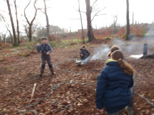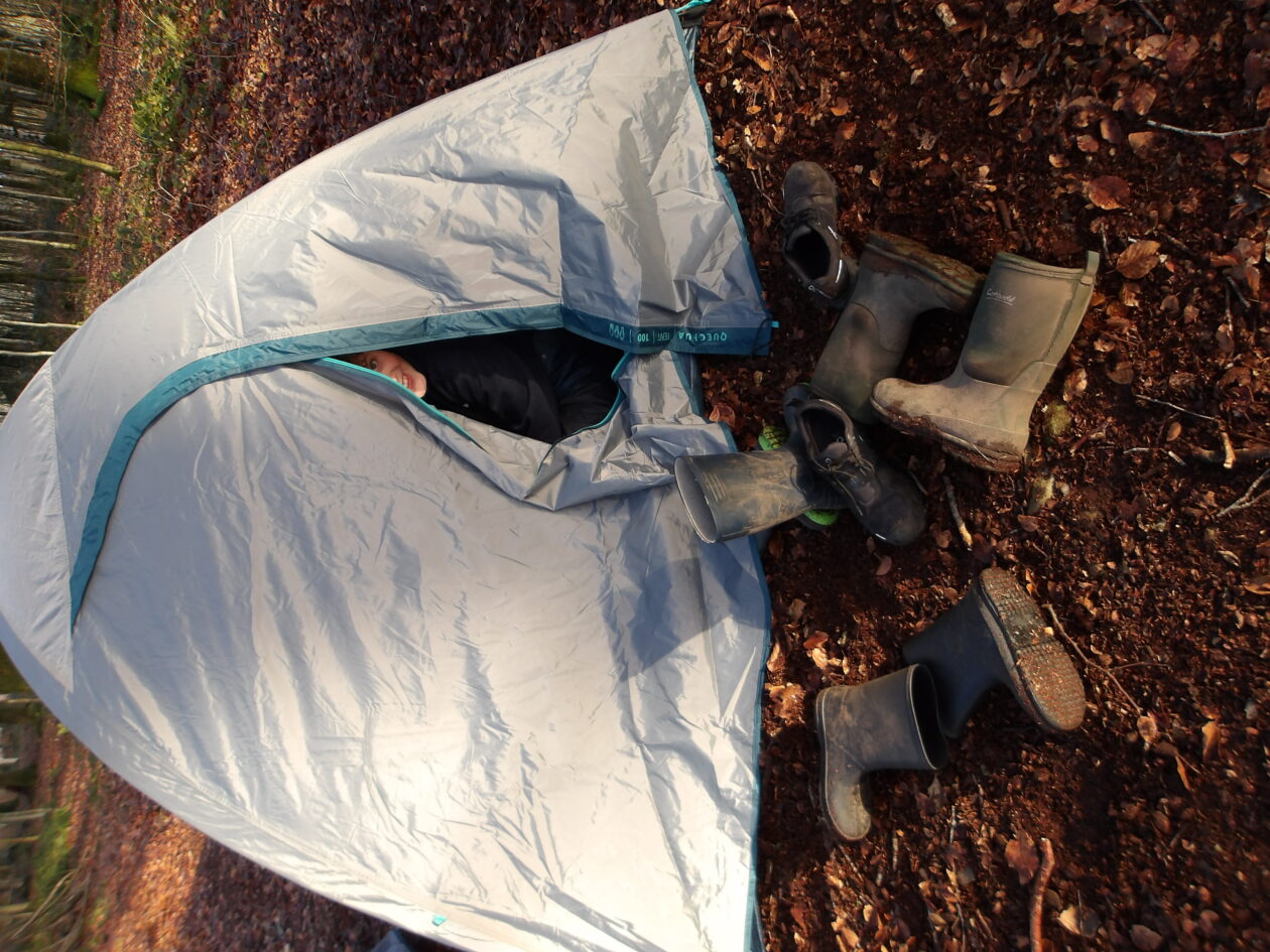 the boys tent! After the disco we collected fire wood for a fire. Once we got the fire going we made quesadillas on it our first a temp was like a lump coal but the second was better. Then we made some s’mores and hot chocolate. Then we went for lunch but no one wanted any because we were all full on quesadillas. When we got back to the woods we did a blindfold trails.