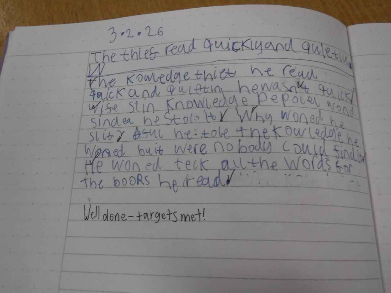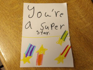 Hi its Dannie here, I am gonna talk about what we have been doing! This week we have been doing things about positivity – like making cards for the school.  Sadly not everyone got one tho. Then we have been doing stuff about apostrophes and we started doing writing every day accept for Thursday. Now we do big read on a Friday we need to read to our buddy on Epic. And we have a class novel its called Running Wild. bye.