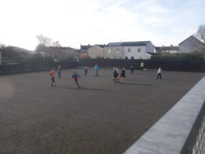 In football skills academy we split into four groups. Then we played a match I was with two primary ones. My team won. After that we played a match which was kids vs coaches. Once we had done that we took shots into a goal and if you scored you went to the left side and if you missed you went to the right.