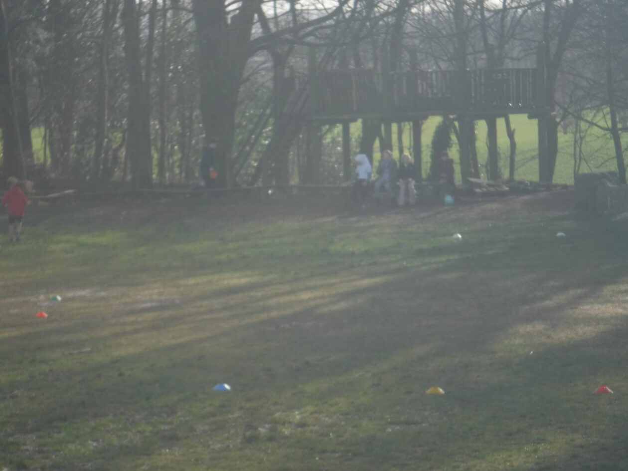 In Frisbee golf we played a game were you stood at a cone and you had to throw your Frisbee into a hoop . There we’re four hoops. When you get it in the hoop you get five points and there is a tyre in the middle of the hoops which gives 10 points. I got 20 points. After that we made our own courses. There was one course that we all tried and it went from the hill to the tree house.