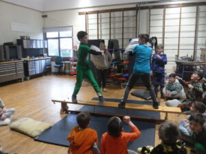 We had two benches two where aloud on a bench a time. You needed to pick a partner to fight ageist. A lot of people picked there best friends to fight ageist. The rules where no head shots tarsal is the only part you can hit.