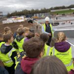 This morning, we buddied up with our friends from Kirkcolm as well as site manager Ross and his colleague Sophie from McTaggart Construction and made our way across to the building site in our snazzy hi-vis vests! We were given a tour of the plot, where Ross explained all the adaptations they make to their houses to ensure sustainable living; from foam insulations, to wood identification trails to make sure they know exactly where the timber frames were grown.🌲🏘 ♻️