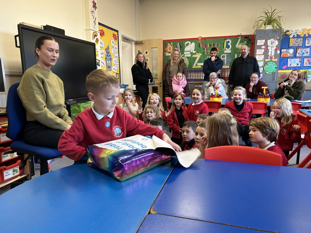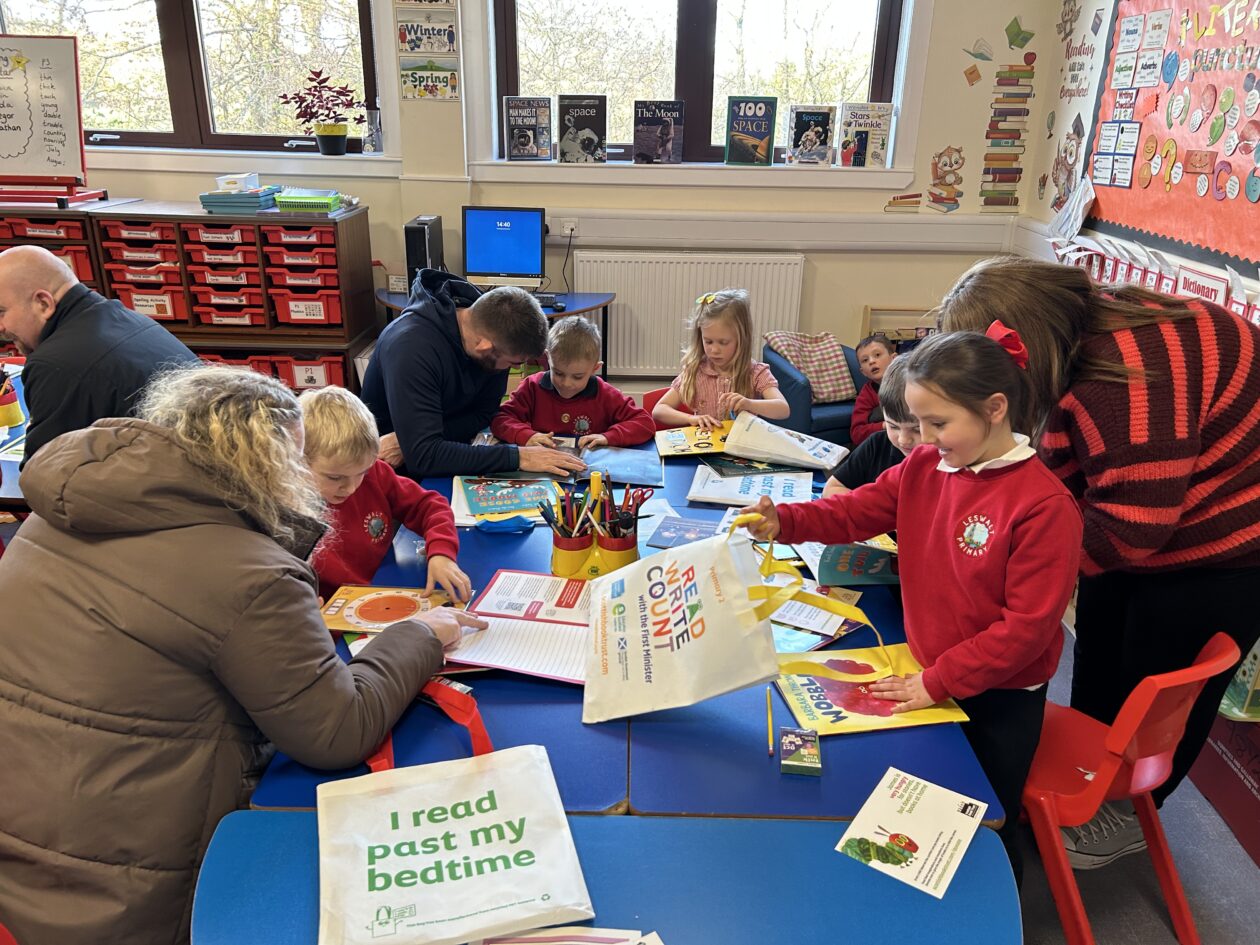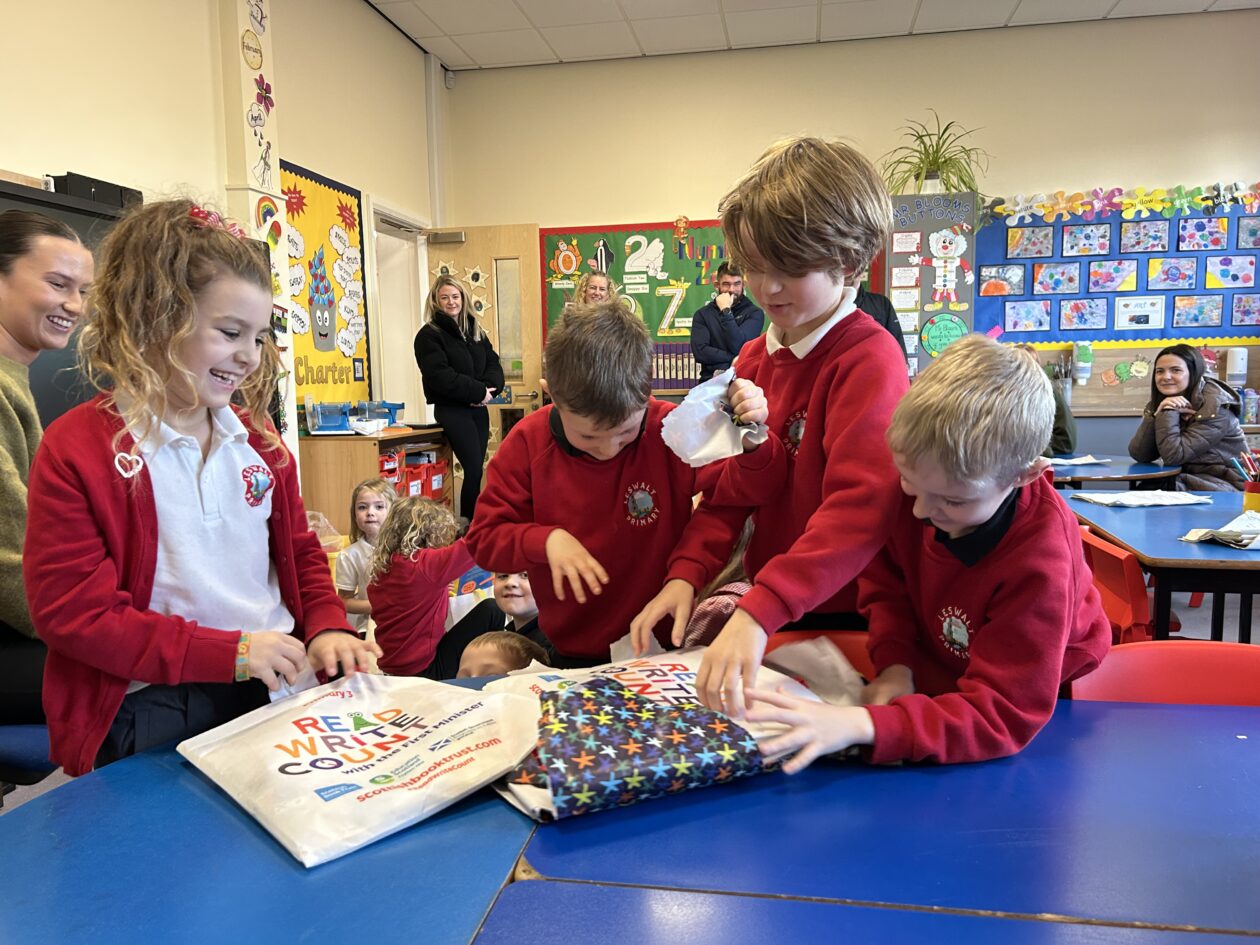 In celebration of Book Week Scotland our P1–3 families were invited into the school to discover the fantastic bags gifted to children by the Scottish Government and Scottish Book Trust.📚All wrapped in rainbow paper the ‘postman’ delivered these gifts to the school this afternoon and the boys and girls were left in suspense to find out what could be inside.. 🎁📦