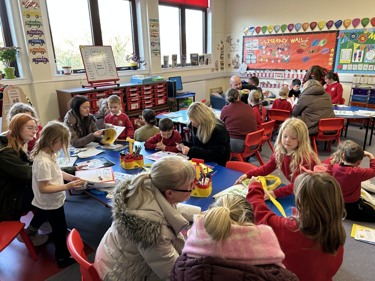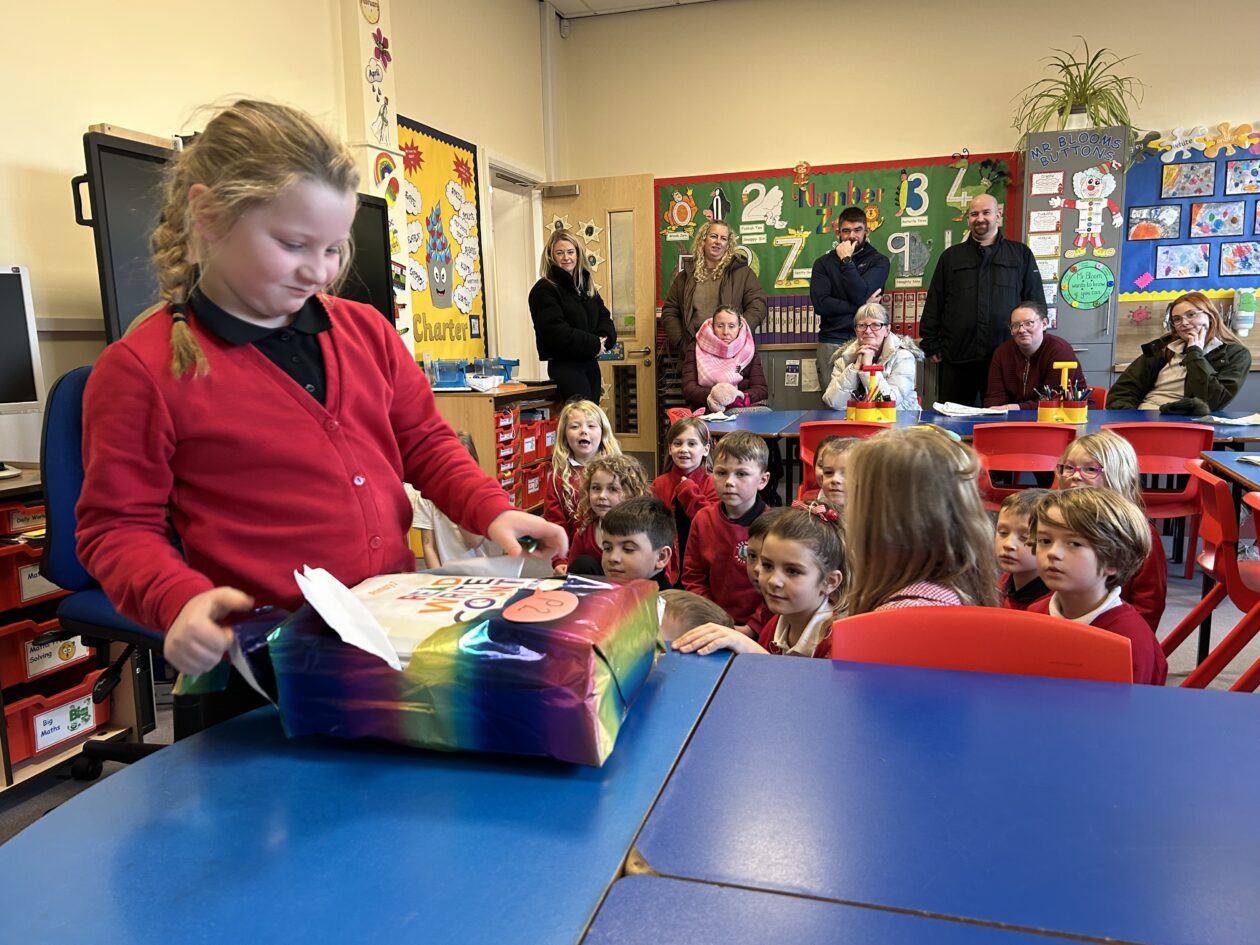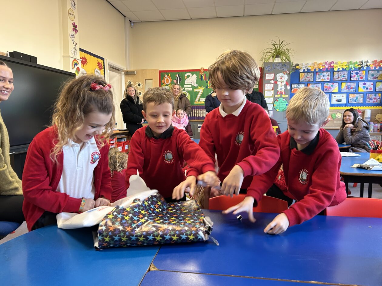 In celebration of Book Week Scotland our P1–3 families were invited into the school to discover the fantastic bags gifted to children by the Scottish Government and Scottish Book Trust.📚All wrapped in rainbow paper the ‘postman’ delivered these gifts to the school this afternoon and the boys and girls were left in suspense to find out what could be inside.. 🎁📦