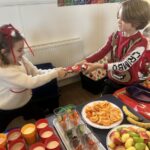 As part of their healthy eating learning P1-4 made some delicious lentil soup! They planned the meal by thinking about the Eat Well Plate and trying to incorporate foods from each group into their recipe. With the help of Mrs Warwick and Mrs Kyle, they set to work, in groups, to carefully peel and chop their vegetables, putting into practice their safe food hygiene learning.