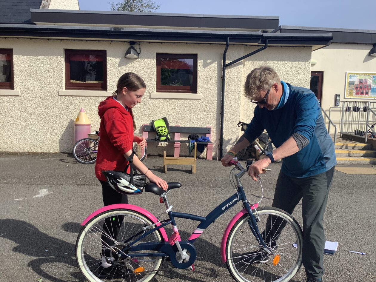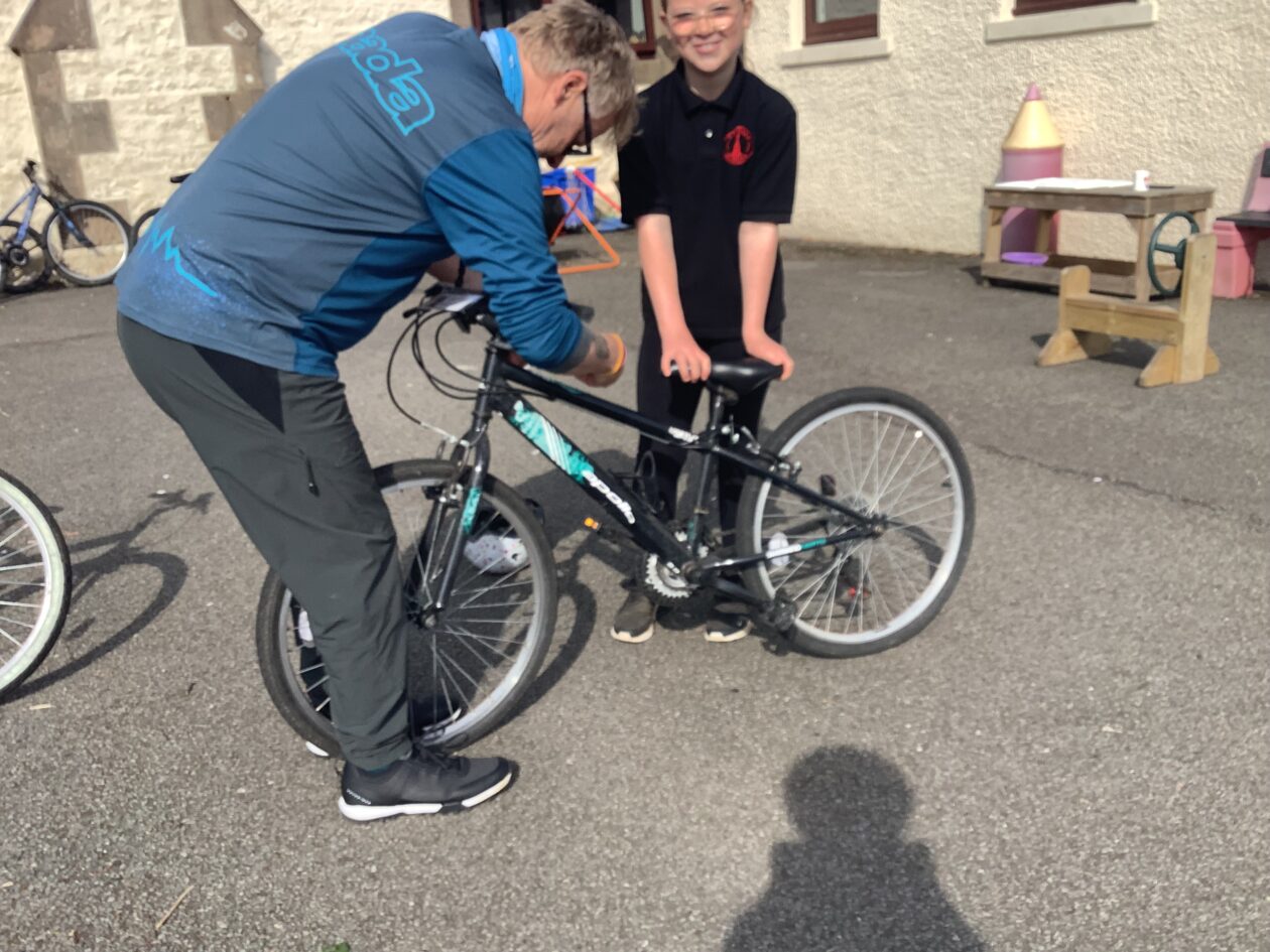 Our sessions will take place over 6weeks and we help us to become safe and responsible cyclists – lifelong skills! Mike has been cycling since he was young and has cycled in lots of countries! He used to be a primary school teacher in Coventry and used to cycle to work on VERY busy roads. He has also completed cycle challenges (a one day 161 mile ride from the Irish Sea to North Sea challenge!), cycled the Hebridean Way Ride 2023 from Barra to Lewis and taken his bike on holidays camping on the way. He shared his love of cycling with us – a hobby which helps him to keep fit too!