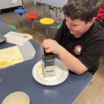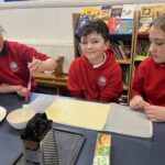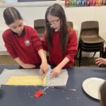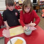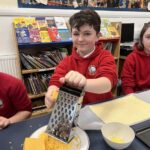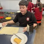 This week, the cooking club set out to make some cheese twists! Hands washed, equipment ready, recipes in hand and oven pre-heating, we were raring to go. Pupils followed a simple 12 step recipe which saw them rolling out a sheet of puff pastry, brushing it with a light layer on butter, grating a layer of cheese on top and slicing it into it into thin strips and twisting with their hands.
