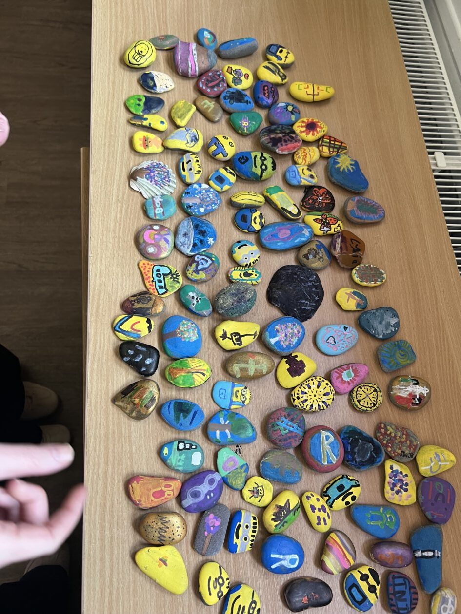 Jane brought along lots of stones and pens and tasked us with drawing a colourful picture on the stone. We had lots of minions, trees, patterns and animals, which Jane seemed super impressed with.๐ณ๐ฑ๐ถ