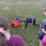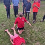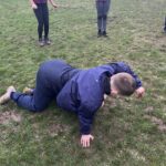 Afterwards, we headed away from the comfort of the concrete to grass to practise some ‘contact’ activities on a soft surface. Pupils paired up to have a go at 4 different safe tackles. Niamh explained that being able to tackle and be tackled safely and effectively is an important priority in rugby and it’s important we can do this before we try a real game situation. ๐