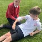 As part of our ‘body systems’ science topic, Lydia had very kindly offered to come in for a CPR workshop. With her, she brought the armless, legless Frank, the CPR dummy. Lydia started off by explaining how she responds to an emergency using the DR ABC technique. This involved firstly checking for ‘Danger,’ secondly checking for a ‘Response’. Afterwards, it was time for action, she showed us how to check a patients ‘Airways’ and the patients ‘Breathing’ and pulse by touching their neck. If the patients breathing, that’s when we would look at ‘circulation’ and the heart.❤️