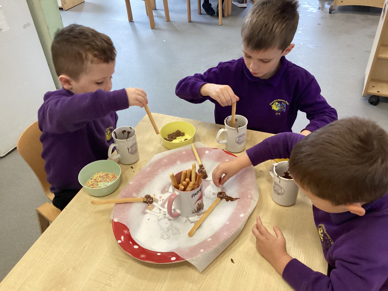 The children have thoroughly enjoyed participating in all our Christmas events and celebrations this month. This last week has been particularly busy with a trip out to Millburn Court to sing to the residents, our sing along, Christmas dinner and our party. We even had a very special visitor join us yesterday all the way from the North Pole. Please have a look at our Big Book and the children’s learning journeys for more photos.