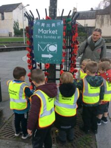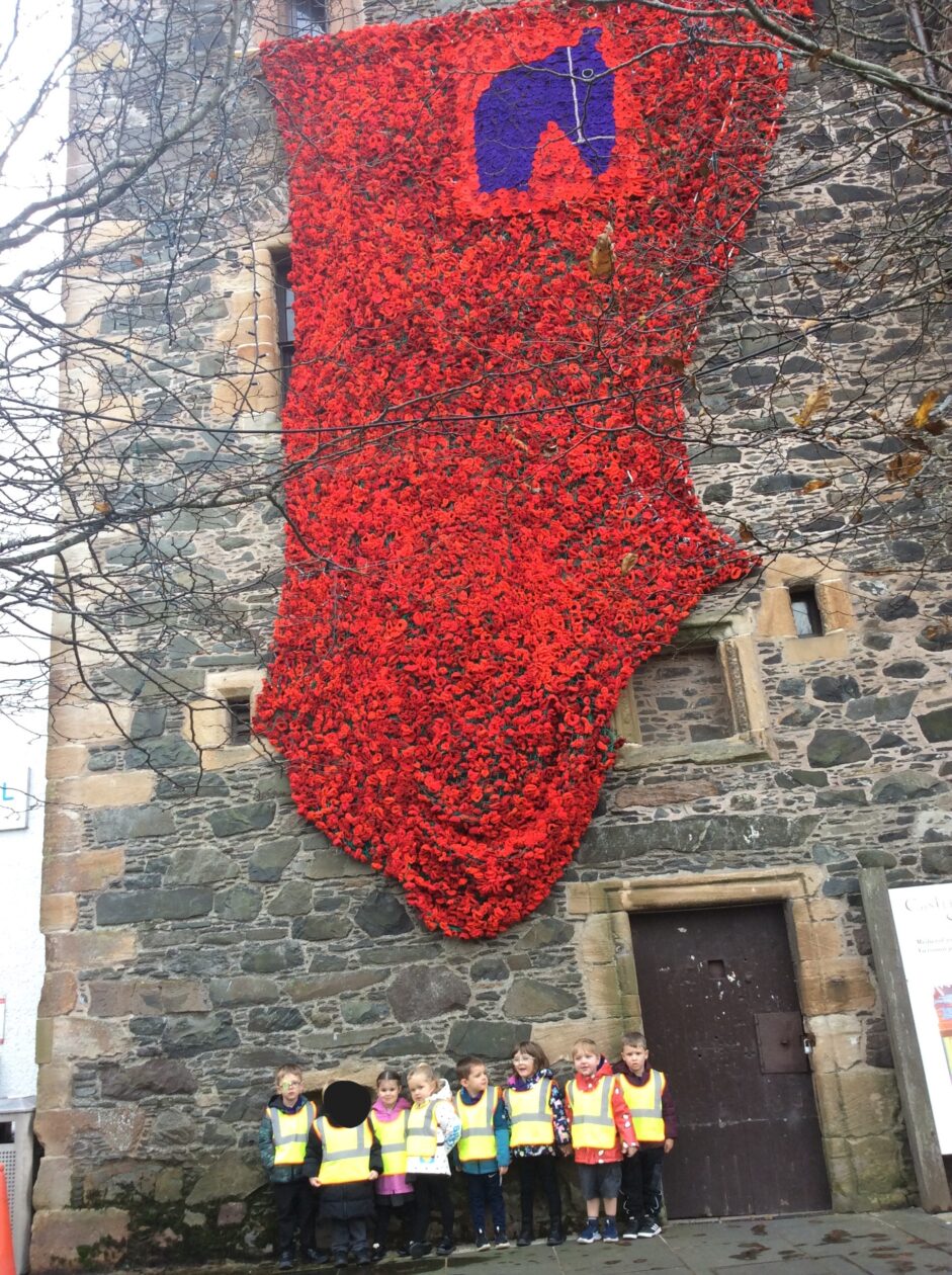 After some discussions around poppies in the Nursery, some children explored the community to go on a poppy hunt. We started by walking down to the town centre where we spotted some window displays at the library and various shops, and a poppy display at the Castle Green. We looked at the different coloured poppies and discussed what the purple and red poppies meant. We then headed to Tesco where the children experienced choosing and purchasing their own snack and enjoyed eating it at The Castle Green before making our way back to the Nursery. Please see our Big Book of learning which will be on display in the foyer to see comments and learning from the children.