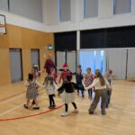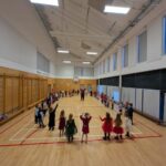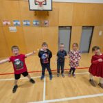 Primary 2 and 3 have taken part in some fun outdoor learning activities over two days this week, building on their knowledge and understanding of 2D shape. We have been playing a ‘buzzing Bee’ game to consolidate our knowledge of hexagons and their properties. We have been singing a pentagon song while we passed a ball and have been learning a new ‘Octagon ‘Stop’ rhyme. These also focussed on helping as memory prompts to recall the number of sides each of these shapes has. These activities were planned to take place during Maths Week Scotland but were delayed by one week due to rain! The Primary 3 pupils have also been experimenting with tiling to extend their knowledge while Primary 2 have demonstrated their curiosity skills in being keen to learn new fun songs and rhymes to help them remember these trickier 2D shape names. We have all been using the meta skill of collaborating.