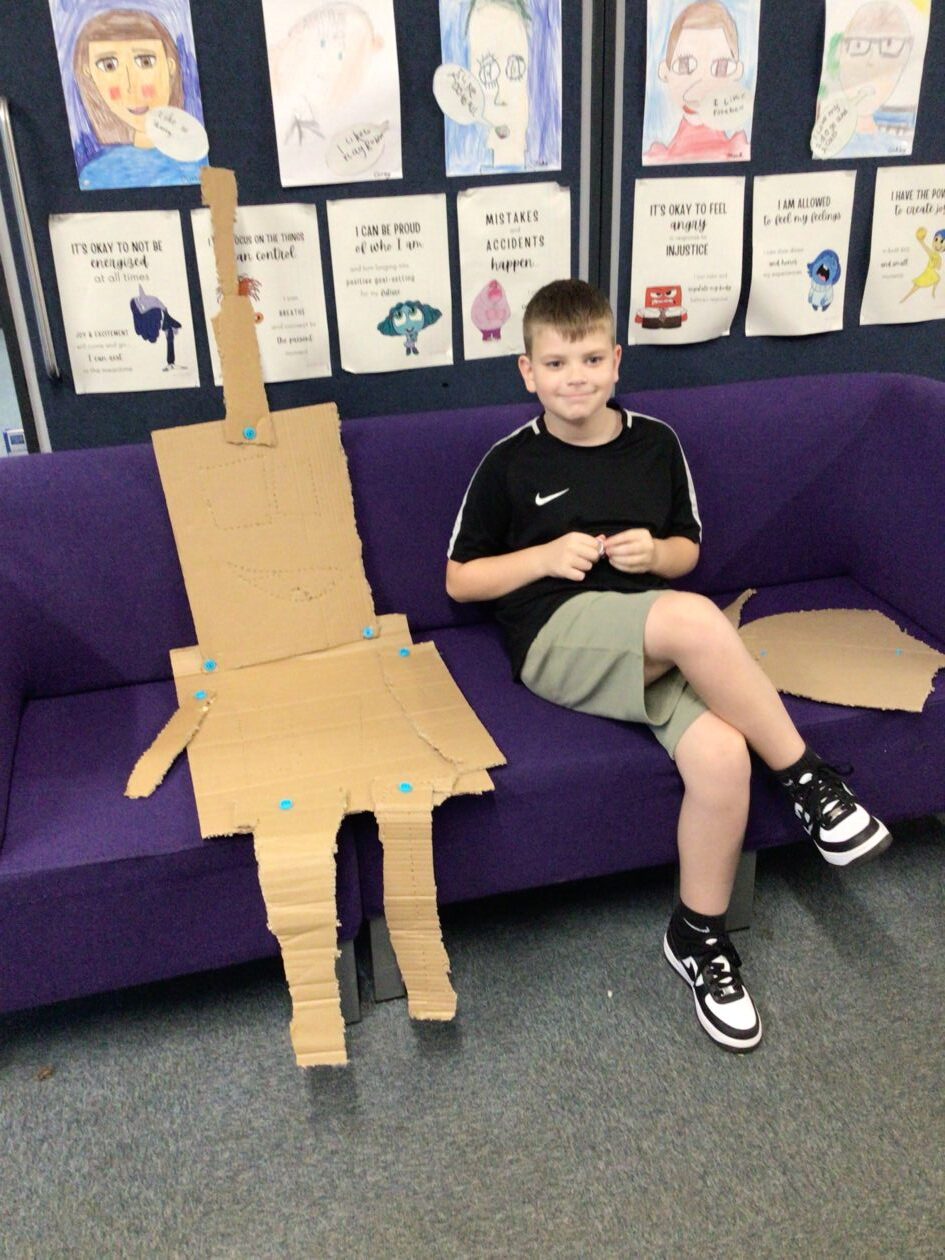 Our topic is Energy this term. The class collaborated in groups to create structures that gave a stationary object potential energy which transferred into kinetic energy. They used Makedo tools and cardboard with super results. I heard a lot of kind language, positive praise and comments to each other, and saw super engineering.