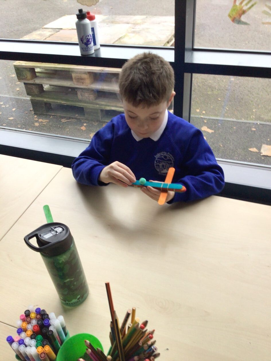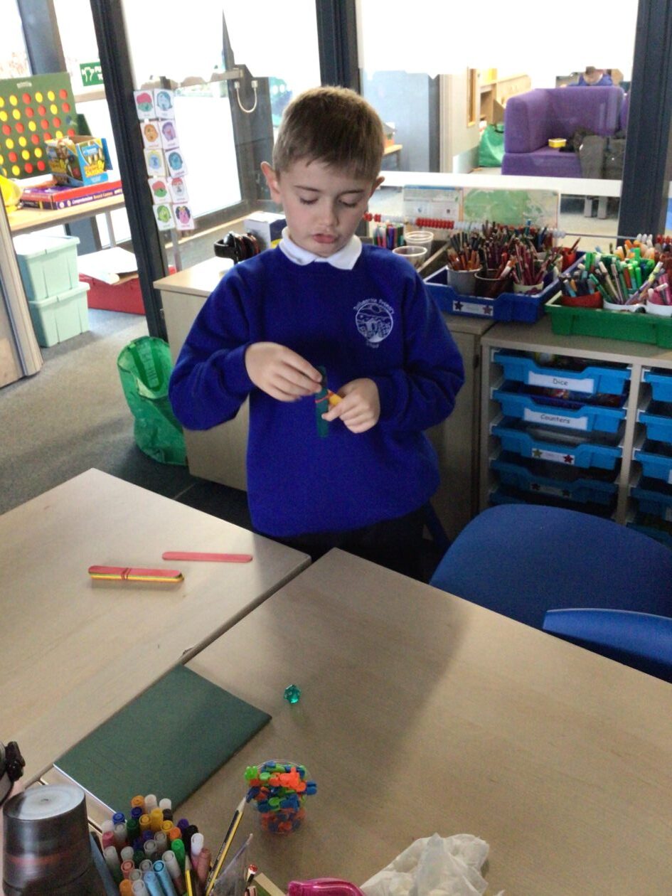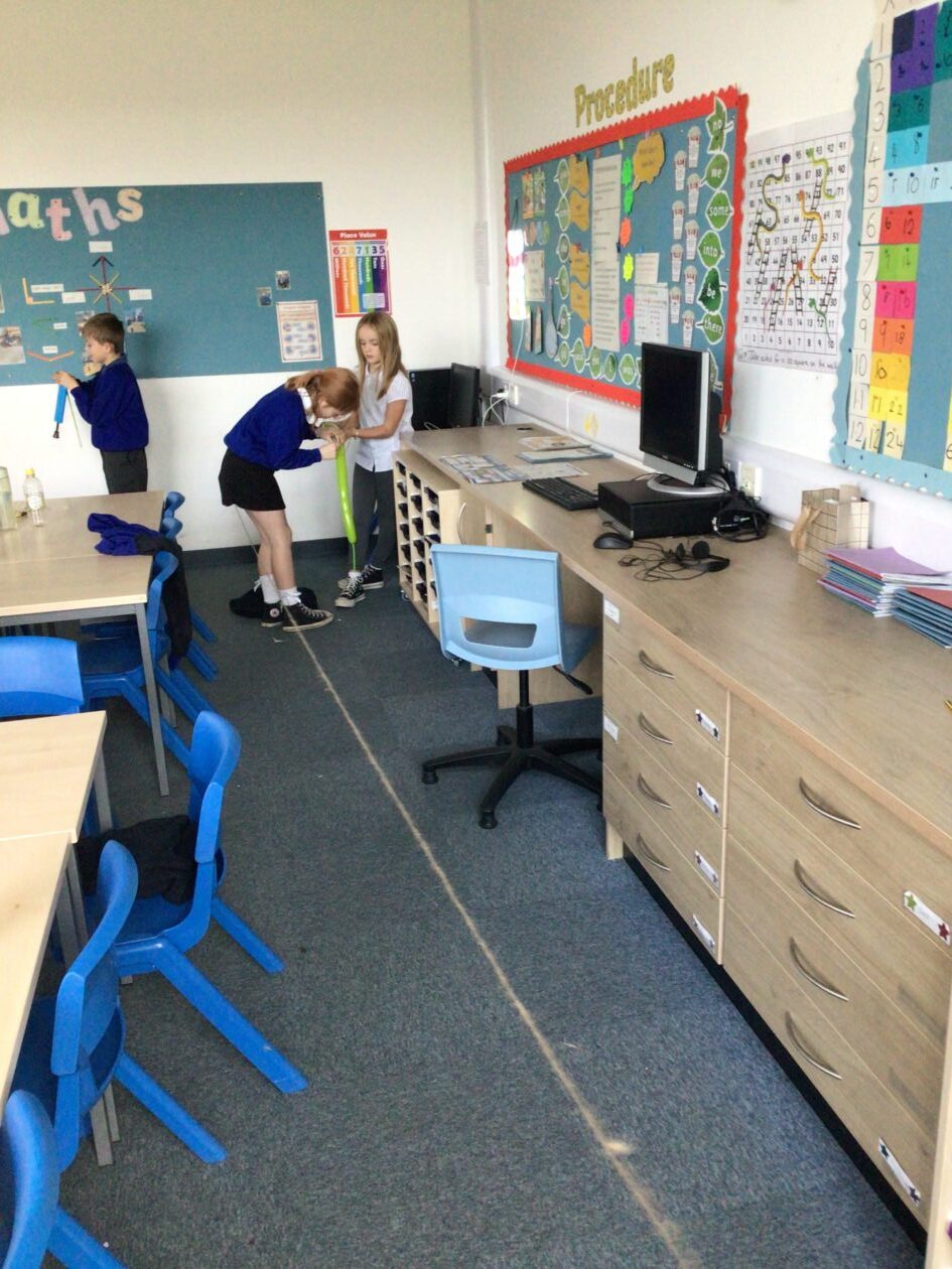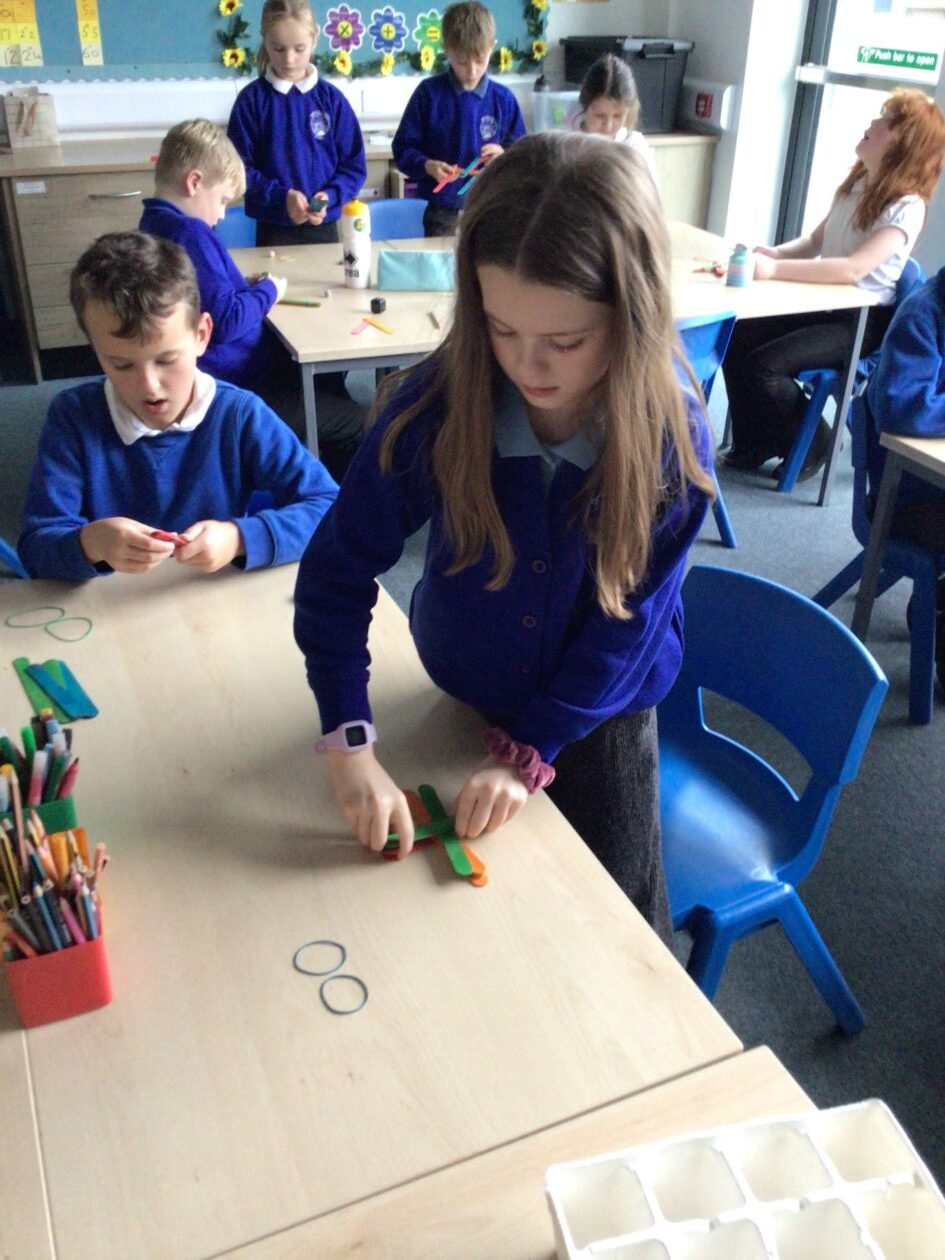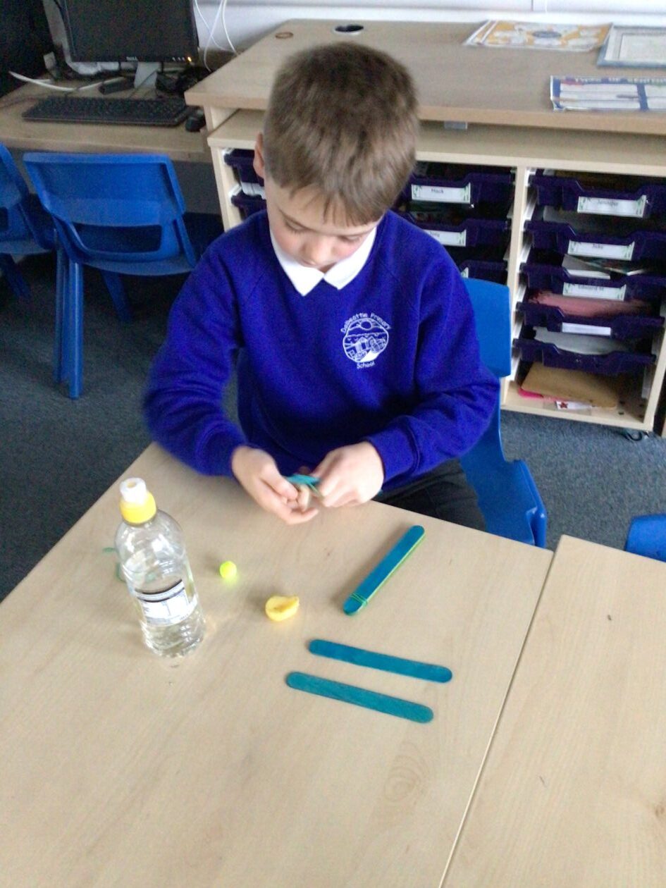 We investigated potential and kinetic energy in our final experiment this week. The class used their Meta-skill of curiosity to play with lolly sticks and elastic bands until they created a catapult to send a pompom flying. They found that if they increased the height of their pompom before it was pulled back to fire, the potential energy that the elastic bands held for the pompom increased too. This transferred to a larger kinetic energy, and you could hit your forehead or even the teacher! Take a look…