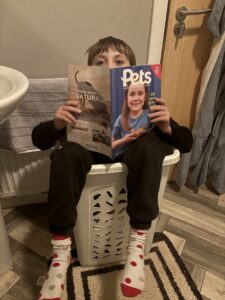 We wonder where your ‘Silliest’ place to read would be? We had kennels, the washing machine, in a digger, in a bath, outside in the dark, upside down, in a suitcase.. to name but a few!