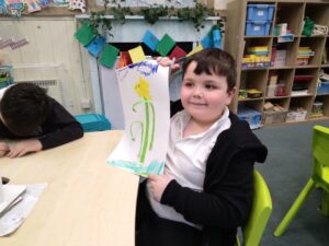 We used a daffodil as an example of what we were going to draw today.