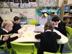 We made daffodils with Mrs Campbell. We used paper and crepe paper to build daffodils. Some people used crayons.