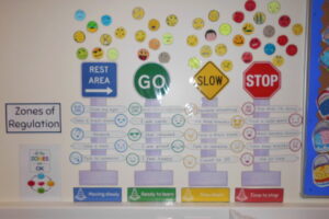 As a whole school we have been focussing on Zones of Regulation and understanding our emotions.  We use the language for each zone to help support us to discuss how we are feeling.  We have identified strategies that we can use to help us get to the green zone so we are ready to learn.  We have a class display for us to refer to.