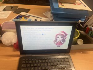 We all planned out our story and then we used Adobe Express to bring our stories to life. We generated our own elf using AI and then created our own books.