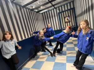 We have been learning about Ancient Egypt. As part of this context we learnt about mummification. We took part in a role play activity where we had to mime the process and we wrapped each other up in toilet roll. It was fun. We also learnt to dance like Egyptians! We developed our teamwork skills.