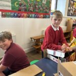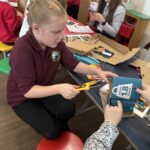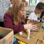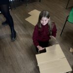 Pupils then came back to Leswalt school to partake in some building of their own. Using make Do kits and recycled cardboard, some truly stunning home visions were created. There was quite the variety of interesting features… (missing roofs in some cases – great chances to allow natural light in!?) But overall, given the time constraints, the results were very impressive!
