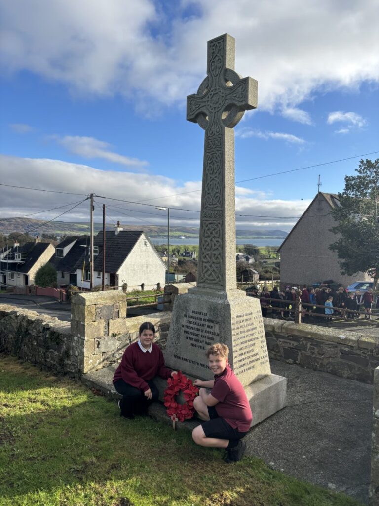 Pupils went on to make some Poppy art in pairs to create a large wreath to display at the War Memorial at Kirkcolm Primary. Pupils took a walk up to the Memorial today to show their respect.