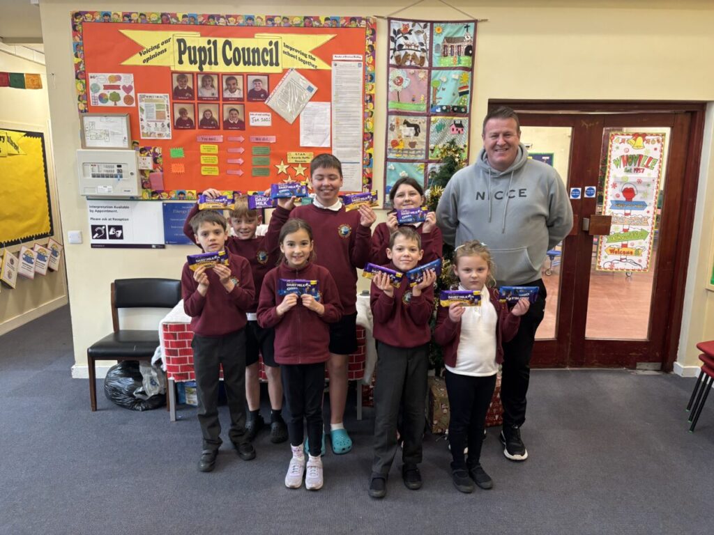 Wow! A huge thank you to Alan Jenkins for deliver a whoppingly large crate of 36 big bars of yummy Cadburys chocolate to Kirkcolm primary today! This very generous donation came from the Stranraer Development Trust along with The Millenium Centre, as a little Christmas treat for the boys and girls! We are very grateful for all these services provide for our little town and for us!