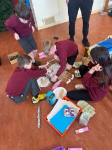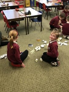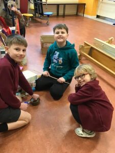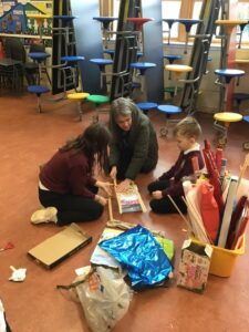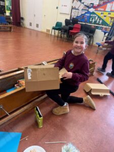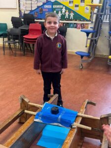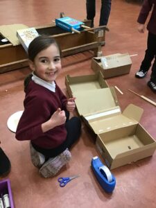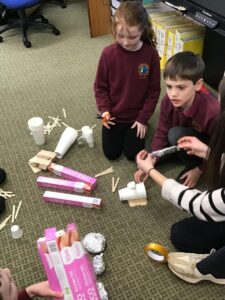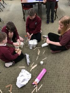 Miss Agnew led a boat building station in her class – the challenge was to construct a boat that could;