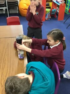 We got to grips with some chemical experiments – seeing what would happen if we mixed up some common household items and the reaction that takes place from it! We got to see first hand the rather explosive outcome that took place! (thankfully we conducted this outside for minimal mess!)