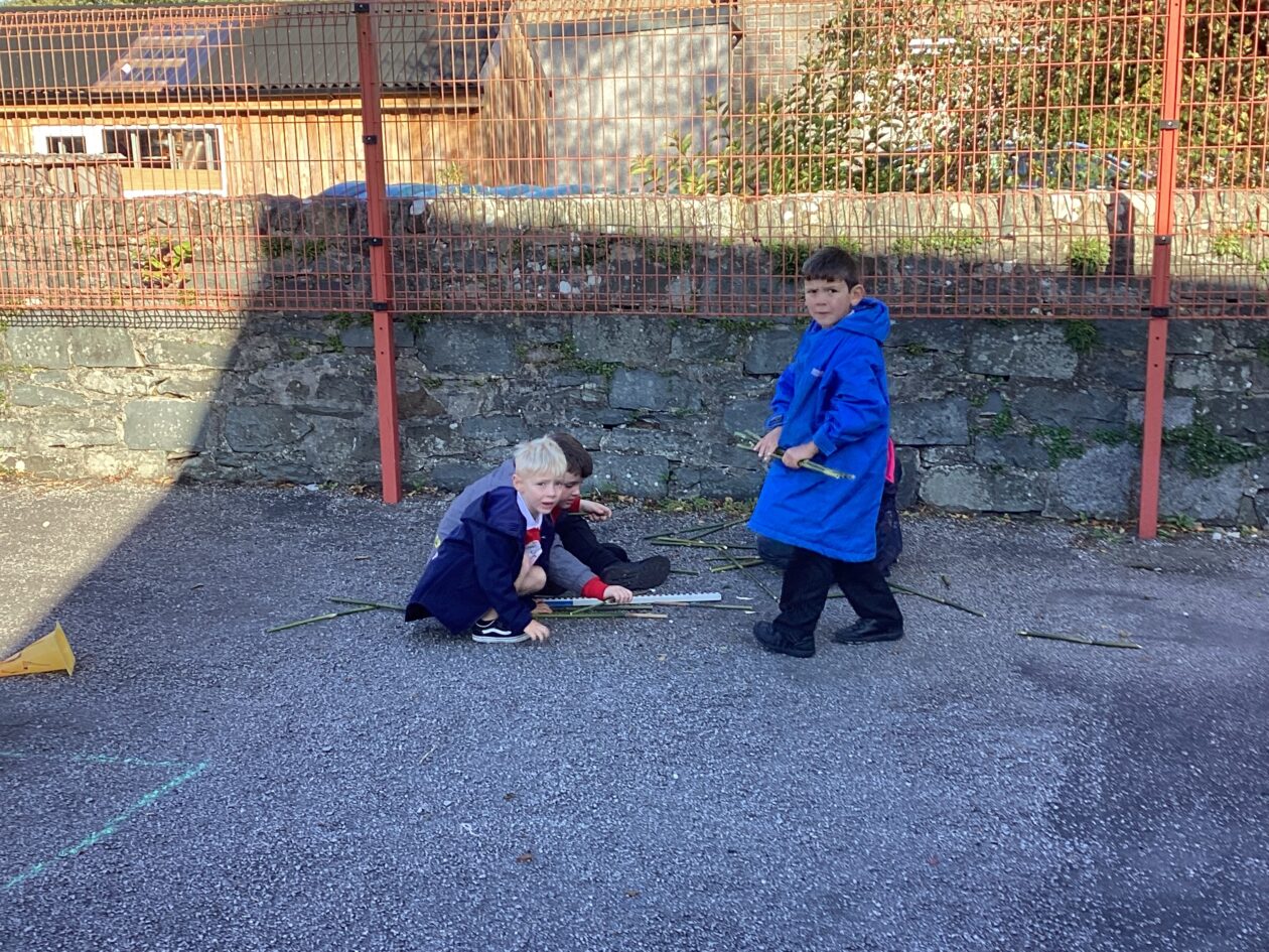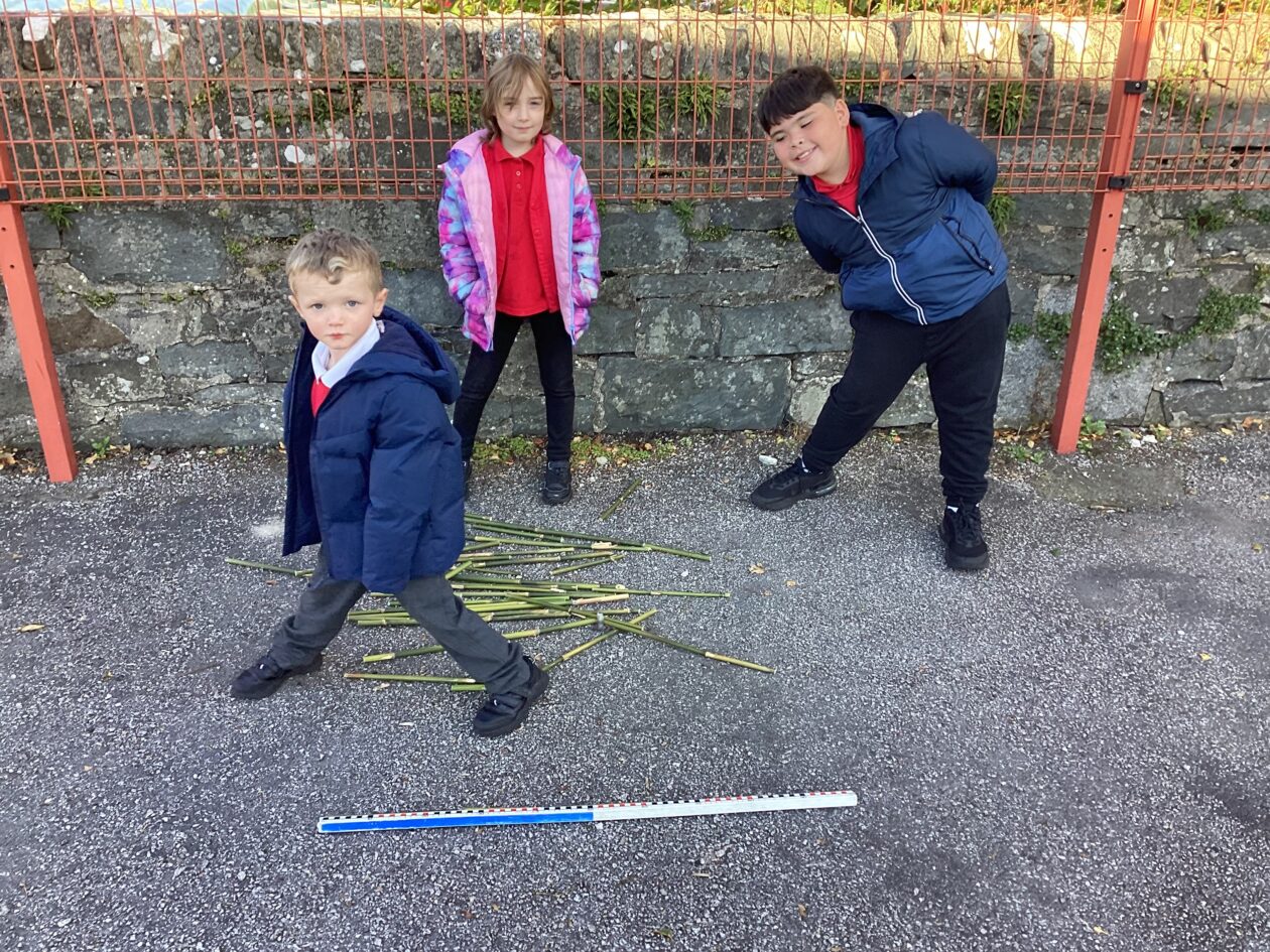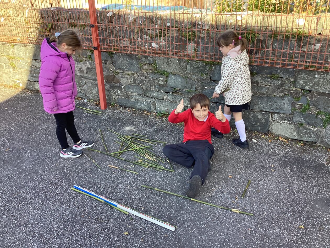 The maths might have been wild, the weather wasn’t and the pupils in P1-4 worked really hard to complete some outdoor maths challenges as part of Maths Week Scotland. In groups the pupils used a Carroll Diagram to sort natural and some unnatural objects that they found in the playground. The pupils also sorted through a huge pile of bamboo to try and find the pieces the measured exactly 1m. Finally, the class played a maths version of noughts and crosses where a winning line of 3 had to add up to 15.