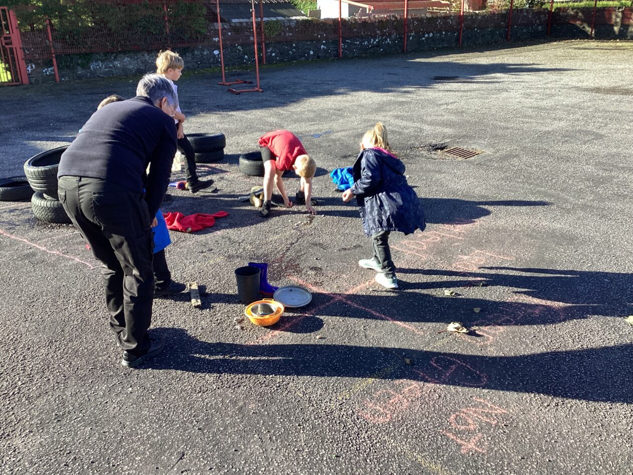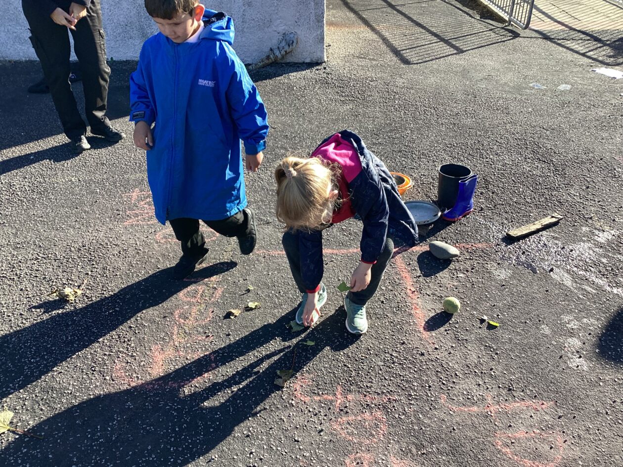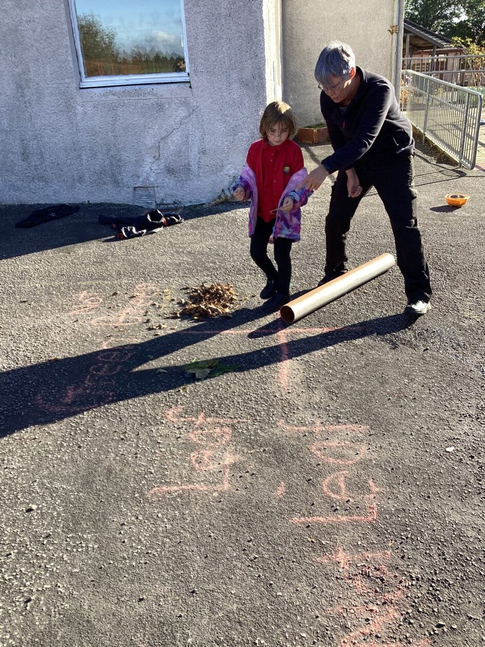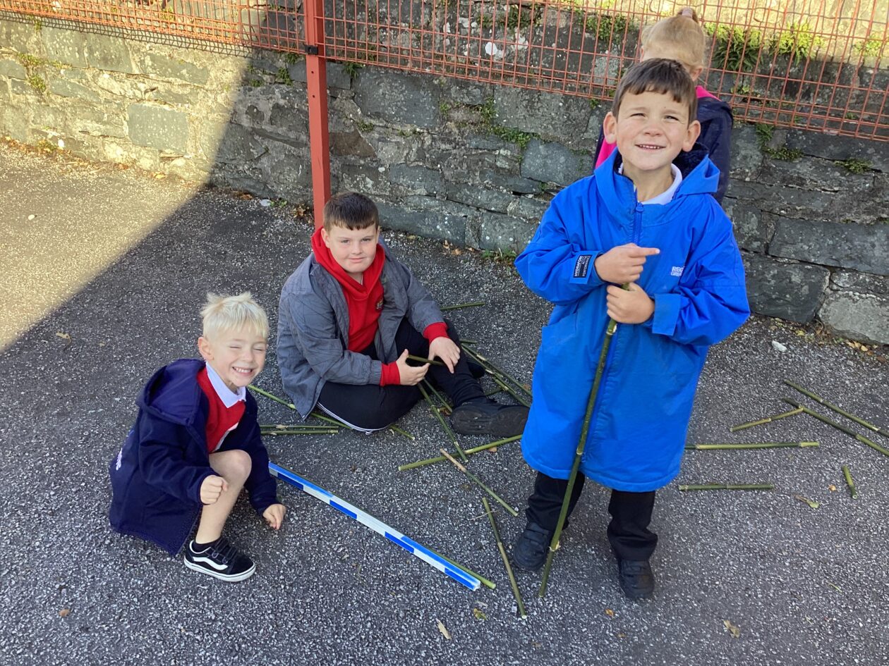 The maths might have been wild, the weather wasn’t and the pupils in P1-4 worked really hard to complete some outdoor maths challenges as part of Maths Week Scotland. In groups the pupils used a Carroll Diagram to sort natural and some unnatural objects that they found in the playground. The pupils also sorted through a huge pile of bamboo to try and find the pieces the measured exactly 1m. Finally, the class played a maths version of noughts and crosses where a winning line of 3 had to add up to 15.