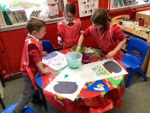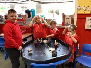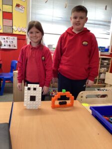 This week we have had lots of fun creating potions with water, food colouring, bicarbonate soda, vinegar and washing up liquid! We also added glitter and some herbs/spices to create different smells and textures. At construction we created pumpkins, ghosts and haunted houses with lego and multi-link cubes. For craft, we designed our own pumpkins and created bubbling witches’ cauldrons using water, paint and washing up liquid. P.1/2 also enjoyed some fun activities centred around Elmer in their first nurture group with Gayle.