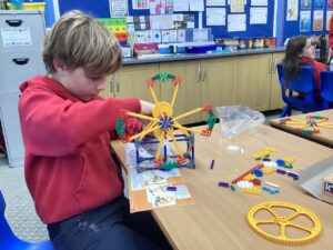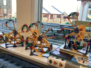 Recently in P.5-P.7 we had a go of our new K’Nex kits we just got as part of Maths Week. We had to try and make a windmill using gears and it was hard at first. We all came across 1 or 2 problems but we never gave up and everyone managed to finish there windmill and they all look really good. We saw how different gears can change the speeds or moving parts.